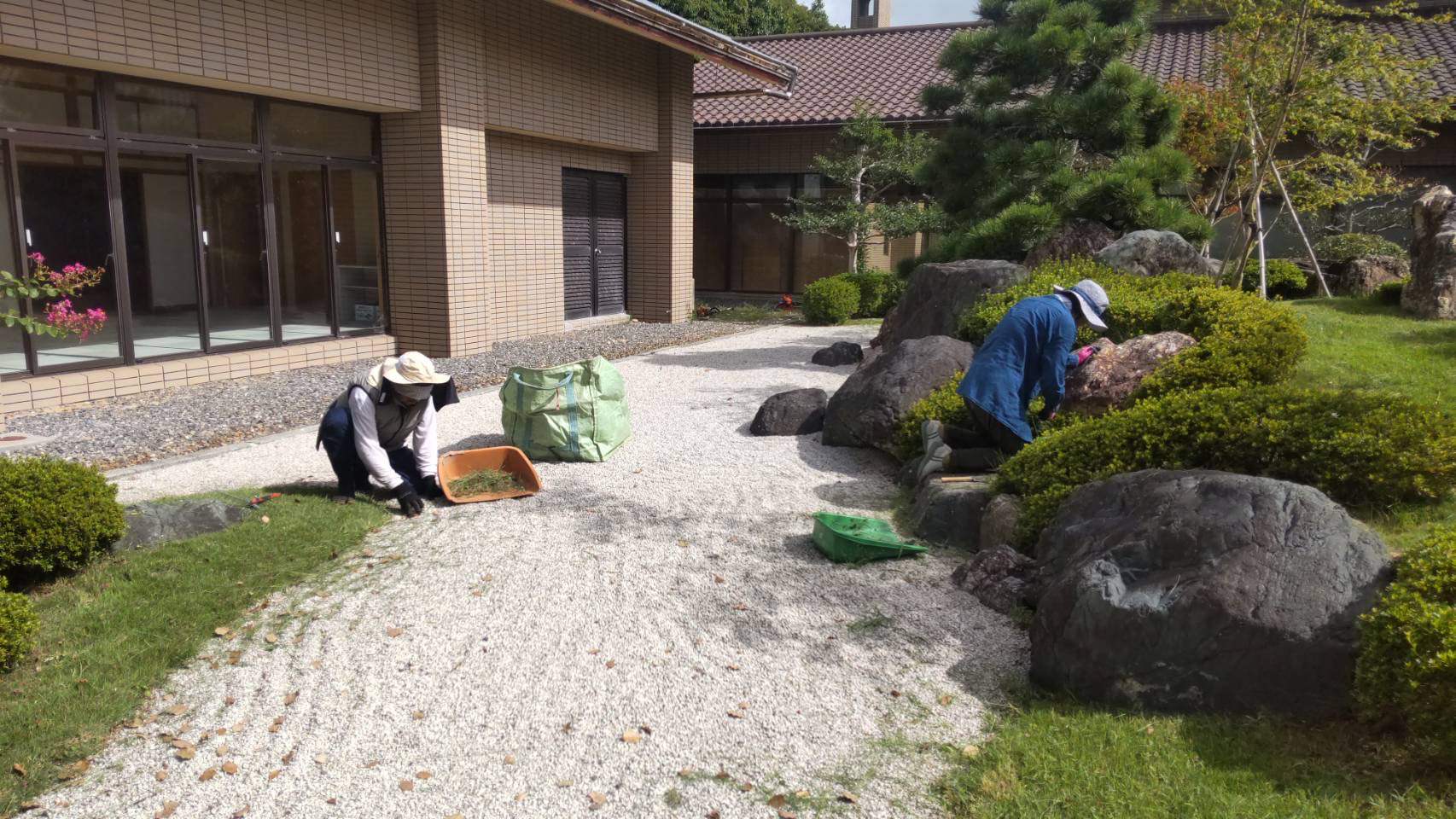 研究会の活動の中心は、月に一度の草引き・砂紋引きです。